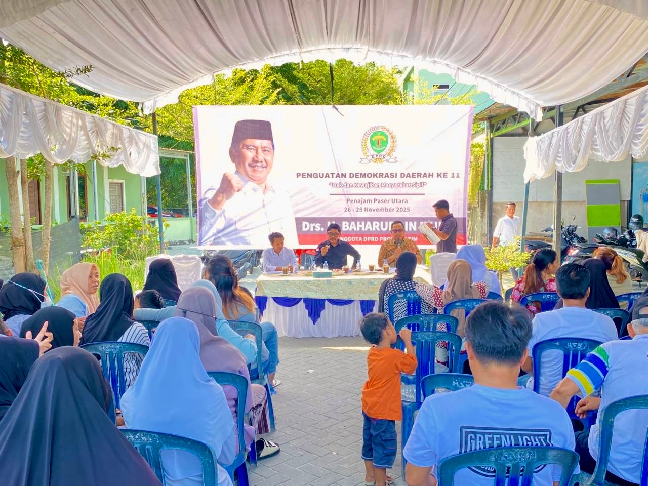 RISALAH – Dalam rangka penguatan demokrasi di daerah, anggota DPRD Kaltim, Drs. H. Baharuddin Muin menggelar kegiatan Penguatan Demokrasi Daerah di dapilnya yakni Kelurahan Sungai Paret, Kecamatan Penajam, Kabupaten Penajam Paser Utara, Jum’at, (28/11/2025).