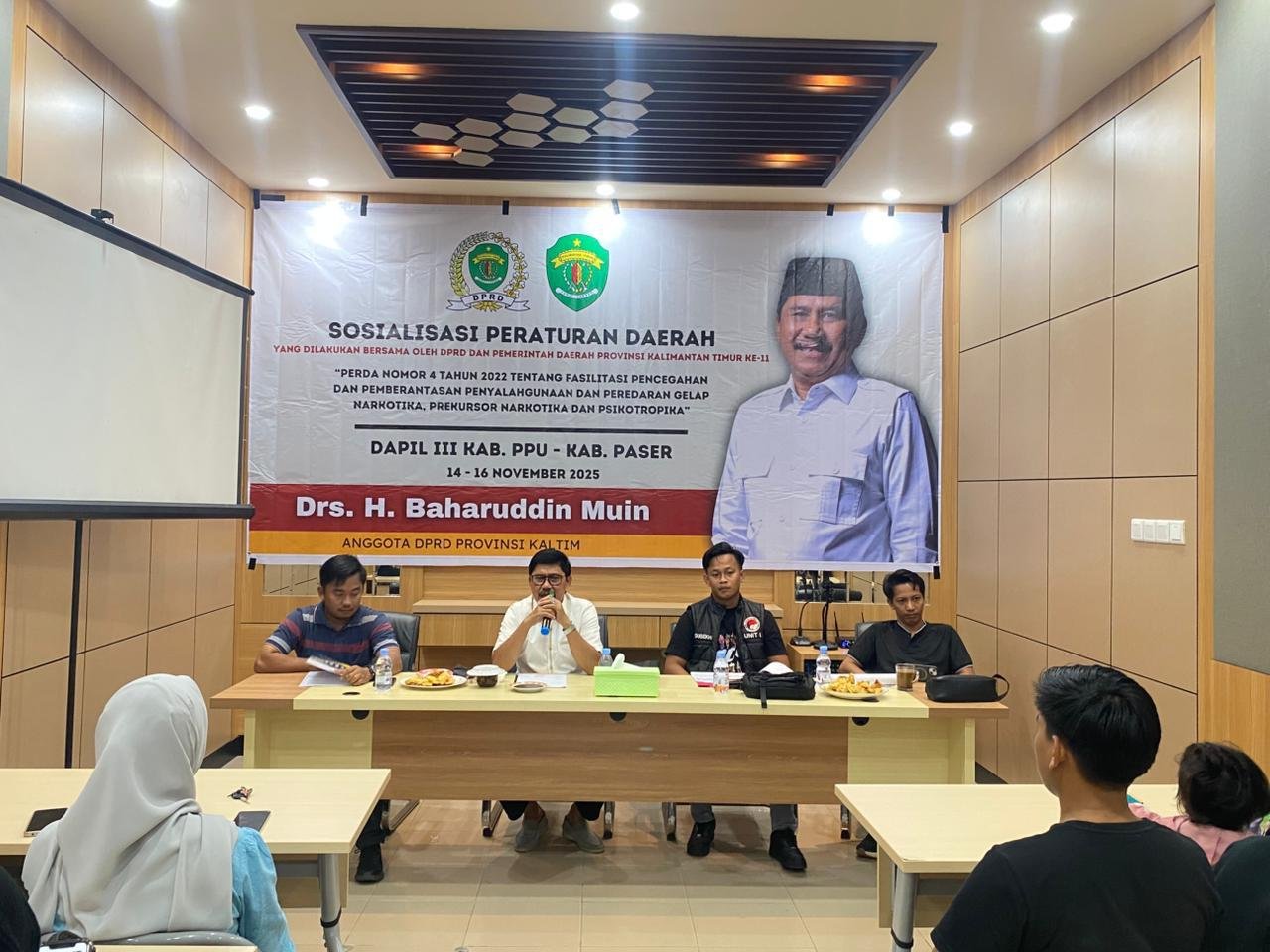 RISALAH – Anggota DPRD Provinsi Kalimantan Timur, Drs. H. Baharuddin Muin menggelar sosialisasi peraturan daerah dengan tema Peraturan Daerah Nomor 4 Tahun 2022 tentang Fasilitasi Pencegahan dan Pemeberantasan Penyalahgunaan dan Peredaran Gelap Narkotika, Prekursor Narkotika dan Psikotropika di Kecamatan Penajam, Sabtu, (15/11/2025).