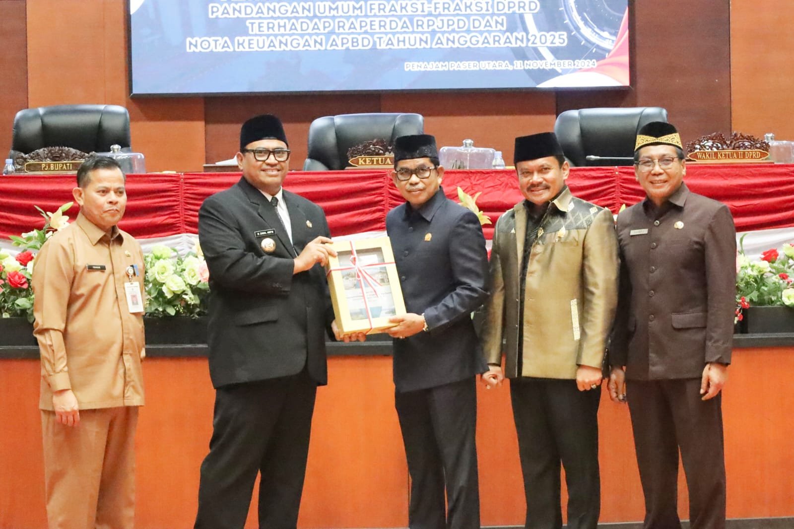 RISALAH – Penjabat (Pj) Bupati Penajam Paser Utara (PPU) dua kali menyampaikan sambutan pada Sidang Paripurna Dewan Perwakilan Rakyat Daerah (DPRD) Kabupaten PPU yang digelar, Senin, (11/11/2024).